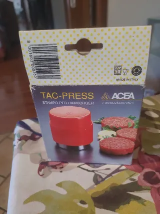 Stampo per hamburger TAC-PRESS di ACEA. - Colore rosso - Realizzato in metallo e plastica. - Made in Italy.