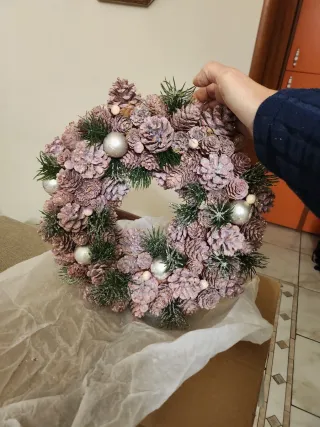 Bellissima ghirlanda decorativa, perfetta per aggiungere un tocco festivo alla tua casa. - Realizzata con pigne naturali. - Dettagli scintillanti. - Decorata con sfere argentate e rametti verdi.
