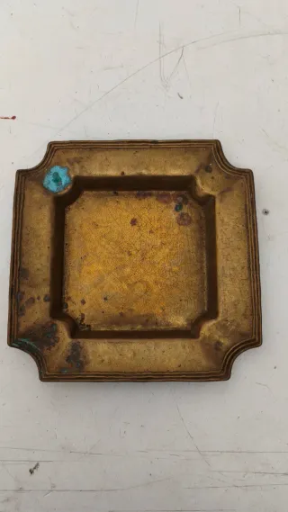 Set di tre svuotatasche in Bronzo-Ottone. - Realizzati in bronzo e ottone. - Design quadrato con bordi sagomati. - Presentano segni di usura dovuti al tempo e all'uso.