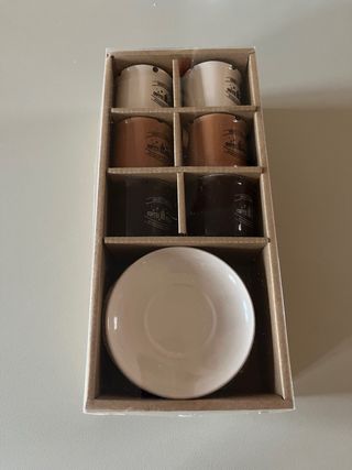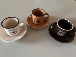 Elegante set di sei tazzine da caffè, perfette per gustare la tua bevanda preferita. MAI usate. 6 tazzine comprese di pattini.