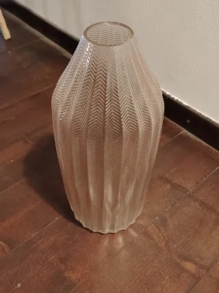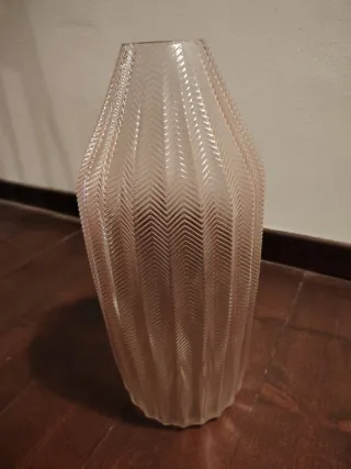 Elegante vaso in vetro con una texture a zig-zag che crea un gioco di luci e ombre. Altezza 40 cm Apertura superiore diametro 6 cm