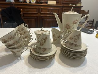 Elegante servizio da caffè con un delicato motivo floreale. - Tazzine con piattini - Caffettiera - Zuccheriera - Lattiera