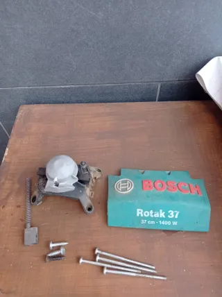 Varie parti di ricambio per tosaerba Bosh Rotak 37. Tutte disponibili come da foto La lama è molto usurata Prezzi per singola parte variabili da 2 a 6 euro. Il telaio con le ruote non è spedibile