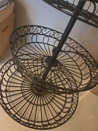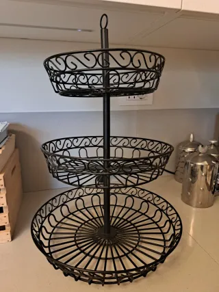 Elegante cesto portafrutta a tre piani, perfetto per organizzare frutta e verdura. - Struttura in metallo resistente. - Design a tre livelli per massimizzare lo spazio. - Finitura nera opaca.