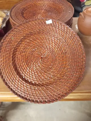 Elegante piatto in rattan, perfetto per aggiungere un tocco rustico alla tua tavola o come centrotavola. - Realizzato in rattan intrecciato. - Tonalità calda e naturale. Diametro 35 N 8 pezzi