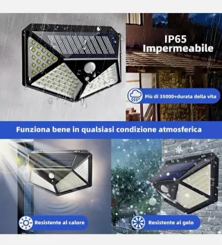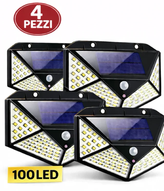 4X FARETTI ENERGIA SOLARE 100 LED SENSORE GIARDINO