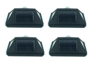 Set di quattro faretti da esterno alimentati a pannello solare. Ideali per illuminare giardini, vialetti o cortili. - Illuminazione a LED ad alta efficienza. - Controllo tramite telecomando incluso. - Design moderno e resistente alle intemperie.