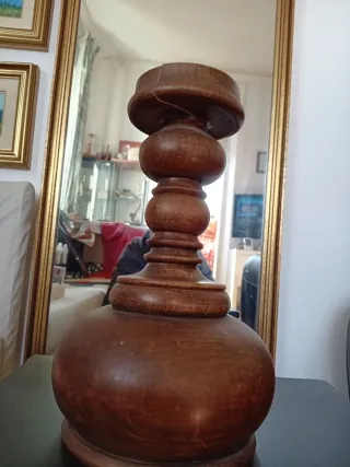 Elegante candelabro vintage realizzato in legno di noce. Un pezzo unico che aggiunge un tocco di classe a qualsiasi ambiente. - Design scolpito a mano. - Base ampia e stabile. - Finitura liscia e calda.
