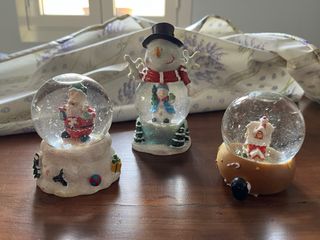 Set di tre sfere di neve a tema natalizio, perfette per decorare la tua casa durante le feste. - Sfera con Babbo Natale. - Sfera con pupazzo di neve. - Sfera con casetta innevata. se desideri posso venderle anche singolarmente