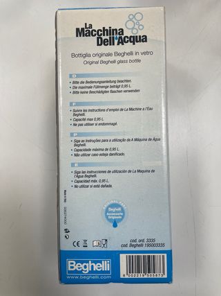 vendo bottiglia vetro per macchina dell’acqua della Begheli. Nuova. Mai usata.