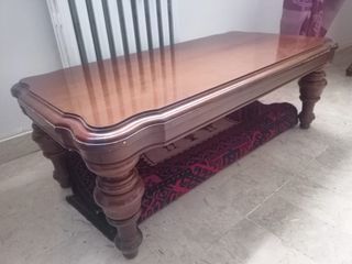 Elegante tavolino da salotto in stile vintage, perfetto per aggiungere un tocco di classe alla tua casa. La sua struttura robusta e il design ricercato lo rendono un pezzo unico. - Gambe tornite in legno massello. - Piano del tavolo con finitura lucida. - Dettagli decorativi sul bordo.
