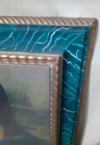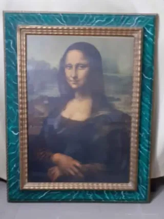 Cornice vintage massiccia di valore (nessun diffetto) con stampa Gioconda (incollata perfettamente su compensato). Dimensione cornice 72x92cm spessore 5,5cm (dimensione stampa 50x70). Peso 6,2 kg Prezzo leggermente trattabile - Dettagli in oro. - Finitura verde. - Realizzata in vetro e legno.