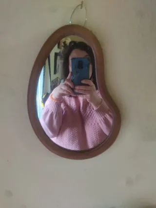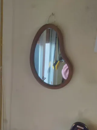Specchio con una forma organica e un design moderno, perfetto per aggiungere un tocco di stile alla tua casa. La cornice è realizzata in legno. - Cornice in legno. - Vetro a specchio.
