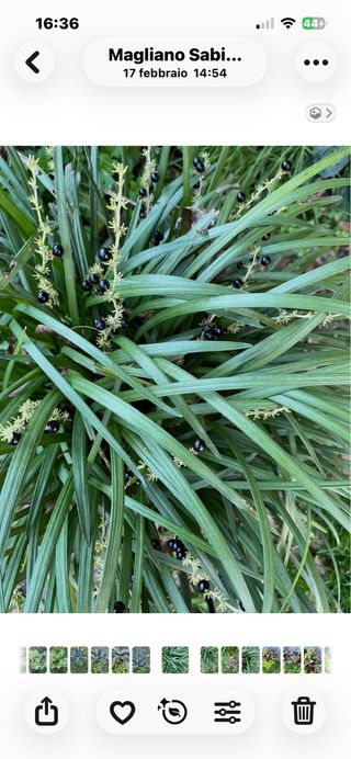 Piante verdi con bacche nere. - Foglie lunghe e strette. - Fiori piccoli e chiari.