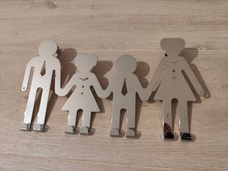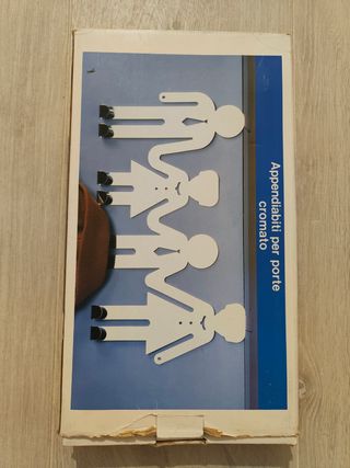 vendo appendi abiti cromato da porta, raffigurante la famiglia. mai usato, tenuto nella sua scatola.