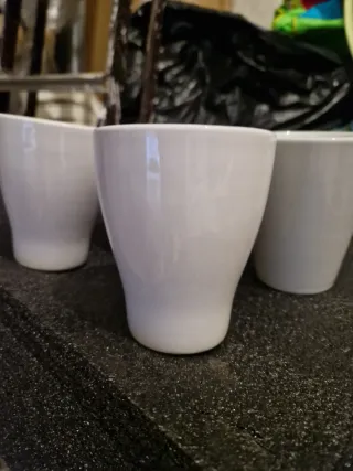 Set di quattro tazze mug Ikea in porcellana bianca. Perfette per la colazione o una pausa.4 tazze mug Ikea ceramica bianche integre., solo una ha un'anomalia, visibile in foto, presente già dall'acquisto ma è perfettamente utilizzabile.Foto assolutamente realistiche. - Design moderno e pulito. - Materiale resistente e durevole.