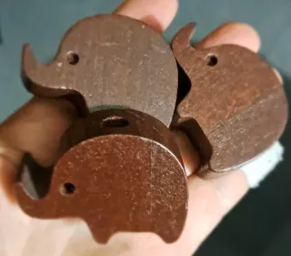 Set di tre porta incensi a forma di elefante, realizzati in legno. - Design a forma di elefante. - Materiale: legno. Non usati