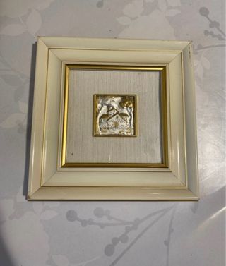 Bellissimo quadretto con decorazione in argento 925 e cornice in legno sbeccata in alcuni punti (vedi foto).