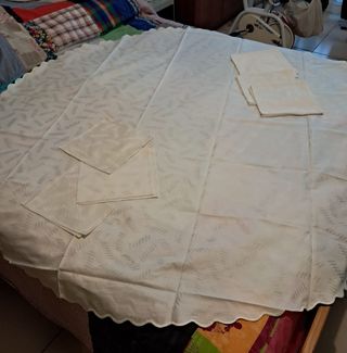 Vendo copritavolo rettangolare in pizzo, colore chiaro. Misure: 152 × 142 cm. Ben conservato, ideale come decorazione per tavolo o credenza.