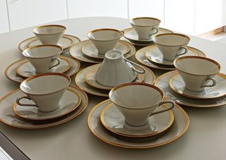 Servizio Caffè 6 Tazze Caffettiera Porcellana Oro