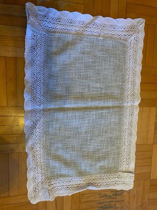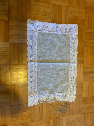 Elegante centrotavola con ricami per decorare la tua tavola. - Bordi in pizzo bianco. - Tessuto a trama fine. Centrotavola ricamato 50x33cm in cotone #centrotavolavintage #centrotavolaricamato #centrotavolarettangolare