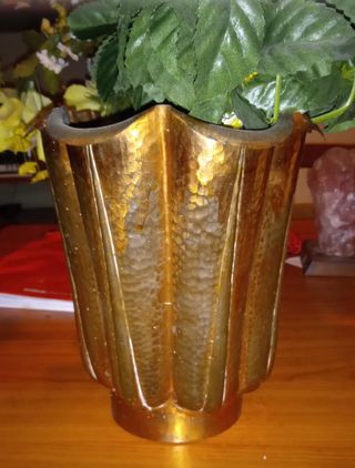 Elegante vaso in rame con finitura martellata, perfetto per aggiungere un tocco di stile alla tua casa. Ideale per composizioni floreali.il prezzo è di partenza fate offerte e vendo al migliore - Design unico con lavorazione a coste. - Colore oro brillante che cattura la luce.