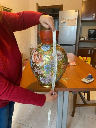 Splendido vaso decorativo con un motivo floreale vivace e dettagli dorativo- Design floreale colorato. - Finitura dorata. qualcuno lo ha già prenotato ma ancora non si è fatto sentire. - Base ampia e stabile.