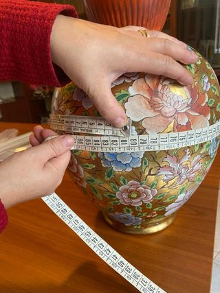 Vaso ceramica decorato floreale oro misure in foto