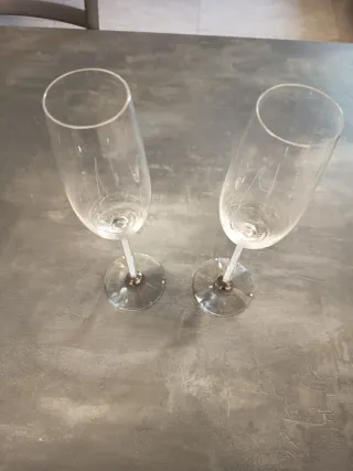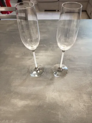 Set di due calici da champagne con un design raffinato. SWAROVSKI - Gambo decorato con brillantini. - Base rotonda e stabile.