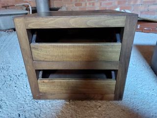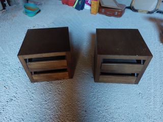 2 vecchi comodini in legno (non so quale). Condizioni abbastanza buone. A uno di loro è stata staccata la parte superiore, ma ce l'ho