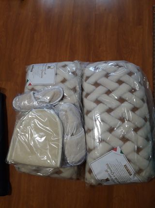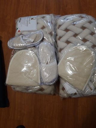 accessori da letto in complemento della coperta matrimoniale tutto 100% in lana merinos - 2 cuscini - 4 ciabatte - 2 scaldacollo - 1 topper
