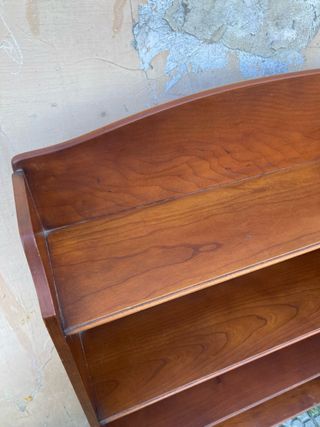 Piccola libreria in legno di ciliegio, ideale per libri o oggetti decorativi. Presenta un piccolo difetto nella parte inferiore destra, ma è in ottime condizioni.