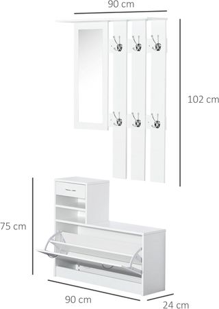 MOBILE DA INGRESSO 3 IN 1: Attraverso la presenza di ganci appendi abiti, uno specchio e una pratica scarpiera, questo mobile attaccapanni da ingresso è perfetto per arredare la casa e l'ufficio 6 GANCI APPENDI ABITI: I 6 ganci doppi in metallo ti permettono di appendere giacche, sciarpe, borse e altri accessori. È presente anche un ripiano per appoggiare piccoli oggetti d'uso quotidiano SCARPIERA A RIBALTA: Questo appendiabiti con scarpiera a 2 ripiani ti permette di riporre scarpe e accessori in ordine per essere utilizzati subito. La mensola centrale è regolabile per fare spazio a diversi tipi di scarpe MATERIALE DUREVOLE: Il nos