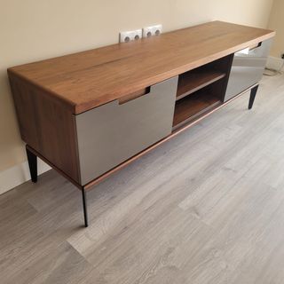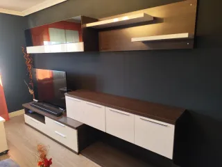 Mobili da soggiorno dal design moderno ed elegante. - Finitura in legno e bianco. - Gambe sottili e resistenti -3 Porte con apertura a pressione Nuovissimi, hanno mesi. Misure: 154 cm di lunghezza, 75 cm di altezza e 40 cm di profondità Ritiro a San Pedro de Alcántara