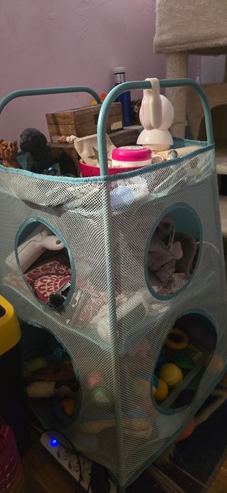 Ottimo organizer a tre livelli, ideale per giocattoli o come cuccia per animali domestici. Ha un design leggero e pratico. - Perfetto per tenere tutto in ordine. - Struttura robusta e facile da montare. - Due livelli con aperture circolari.