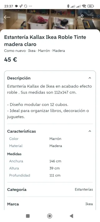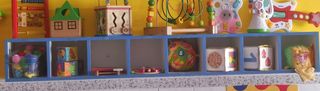 Set di scaffali per organizzare giocattoli e oggetti. Uno è angolare e smontabile, l'altro in pino. Struttura principale in legno. Ideali per giocattoli o libri, possono essere posizionate a terra o appese. Si vendono insieme o separatamente. Vendita in loco a Santiago de Compostela o dintorni. Si vendono solo scaffali, non giocattoli.