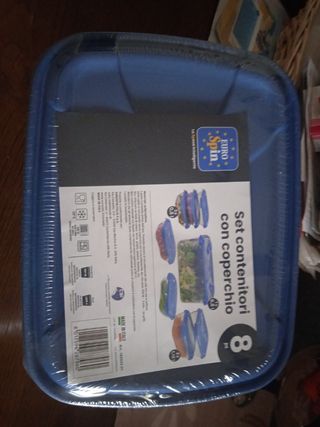 Set di 8 contenitori per alimenti Euro Spin, nuovi e mai usati. Sono perfetti per conservare cibo in frigo o freezer, microonde , - Set completo di 8 pezzi con coperchi. - Ideali per organizzare al meglio la dispensa. - Materiale plastico resistente e trasparente. Euro9