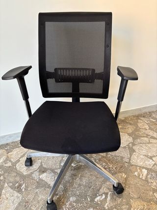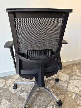 Sedia da ufficio dal design moderno e confortevole. - Schienale in rete traspirante. - Braccioli regolabili. - Base a stella con ruote per facilitare lo spostamento.