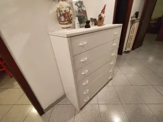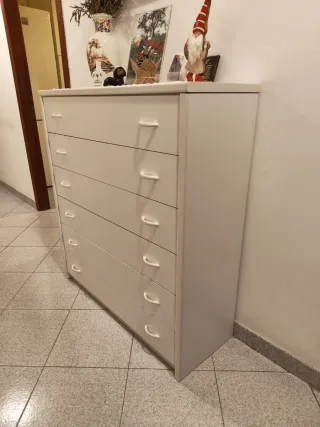 Cassettiera bianca con sei cassetti, ideale per organizzare i tuoi spazi. Larghezza 95 cm, profondità 36 cm, altezza 105 cm. Città: Cuneo centro storico. No spedizioni. Ritiro a carico dell'acquirente. - Struttura in legno laccato bianco.