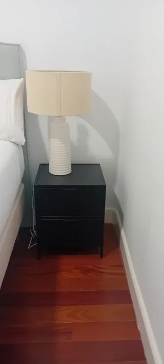 Coppia di comodini dal design moderno ed elegante. Perfetti per completare la tua camera da letto. - Finitura in legno di alta qualità. - Cassetti con maniglie metalliche. Si vendono anche separatamente 15€/cad. Dimensioni: 48 cm larghezza x 34 cm profondità x 47 cm altezza.