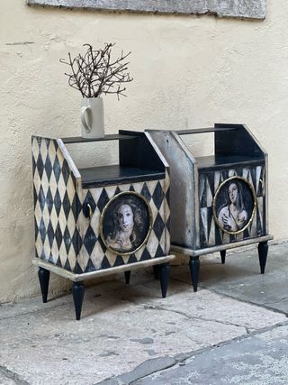 Comodini Vintage Dipinti Arlecchino Rombi