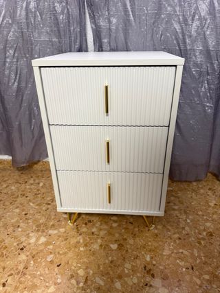 Comodini alti con 3 cassetti ciascuno, spaziosi, ideali per organizzare vestiti e accessori. Design moderno adatto a qualsiasi stanza. Nessuna spedizione. Nessun trasporto. Prezzo per entrambe le unità. - Finitura brillante. - Maniglie metalliche. - Struttura robusta.