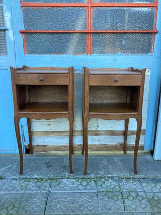 Set di due comodini francesi. Pezzi affascinanti che aggiungono un tocco classico a qualsiasi stanza. - Design con un cassetto. - Ripiano inferiore. - Gambe curve con dettagli. - Finitura in legno. Dimensioni: 33 cm di larghezza, 28 cm di profondità, 70 cm di altezza. Consegna in tutta Madrid e dintorni inclusa.