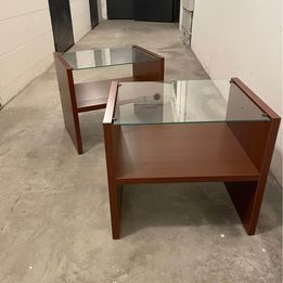 Coppia Comodini Legno con Piano in Vetro