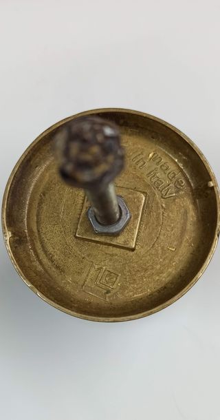 Bellissimi pomelli terminali antichi per letto, in metallo. Sono due pezzi, con finitura in ottone e ferro battuto color marrone. - Perfetti per un restauro o per dare un tocco vintage al tuo arredamento, mostrano segni del tempo. Filettatura 8M. Dimensioni: Lunghezza 26 cm. Diametro 2 cm. Peso 650 Grammi cadauno