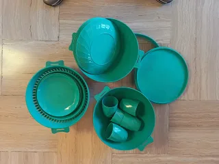 Set da picnic in plastica, ideale per 6 persone. Perfetto per gite fuori porta e campeggio. - Materiale: Plastica resistente - Colore: Verde brillante - Include piatti e bicchieri