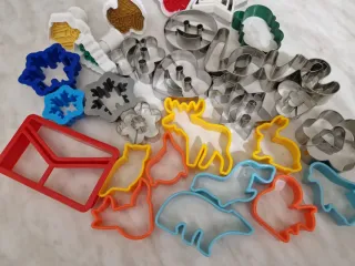 Set di formine per biscotti e dolci di varie forme e dimensioni. Ideali per creare decorazioni uniche. - Formine in metallo e plastica. - Diverse forme disponibili, tra cui animali, fiocchi di neve e lettere.