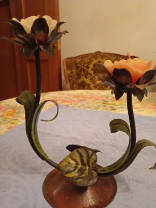 Elegante candelabro Cruccolini a doppia candela, perfetto per aggiungere un tocco di stile alla tua casa. - Design floreale unico. - Struttura in metallo resistente.
