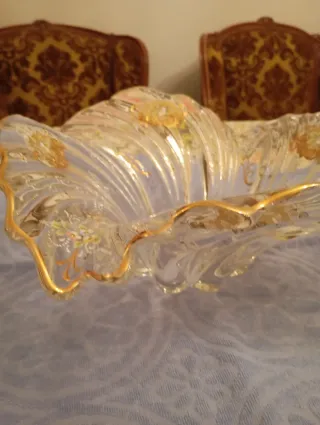 Centrotavola in cristallo con decori oro