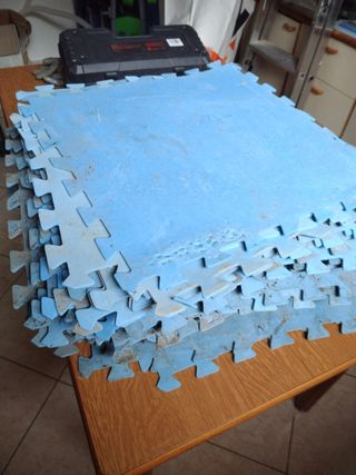 Tanti accessori per sistemare e tenere pulita la piscina. Base per piscina, 11 metri quadri di mattonelle in gommapiuma+telo per copertura (copre una piscina 3x2)+skimmer Intex luxury per la pulizia dell'acqua+3 porta pastiglie/granuli di prodotti chimici galleggianti per la pulizia dell'acqua (uno grande e 2 piccoli)+asta con retino e aspirazione con spazzola per il fondo. Viste le dimensioni del totale posso fare solo ritiro a mano.